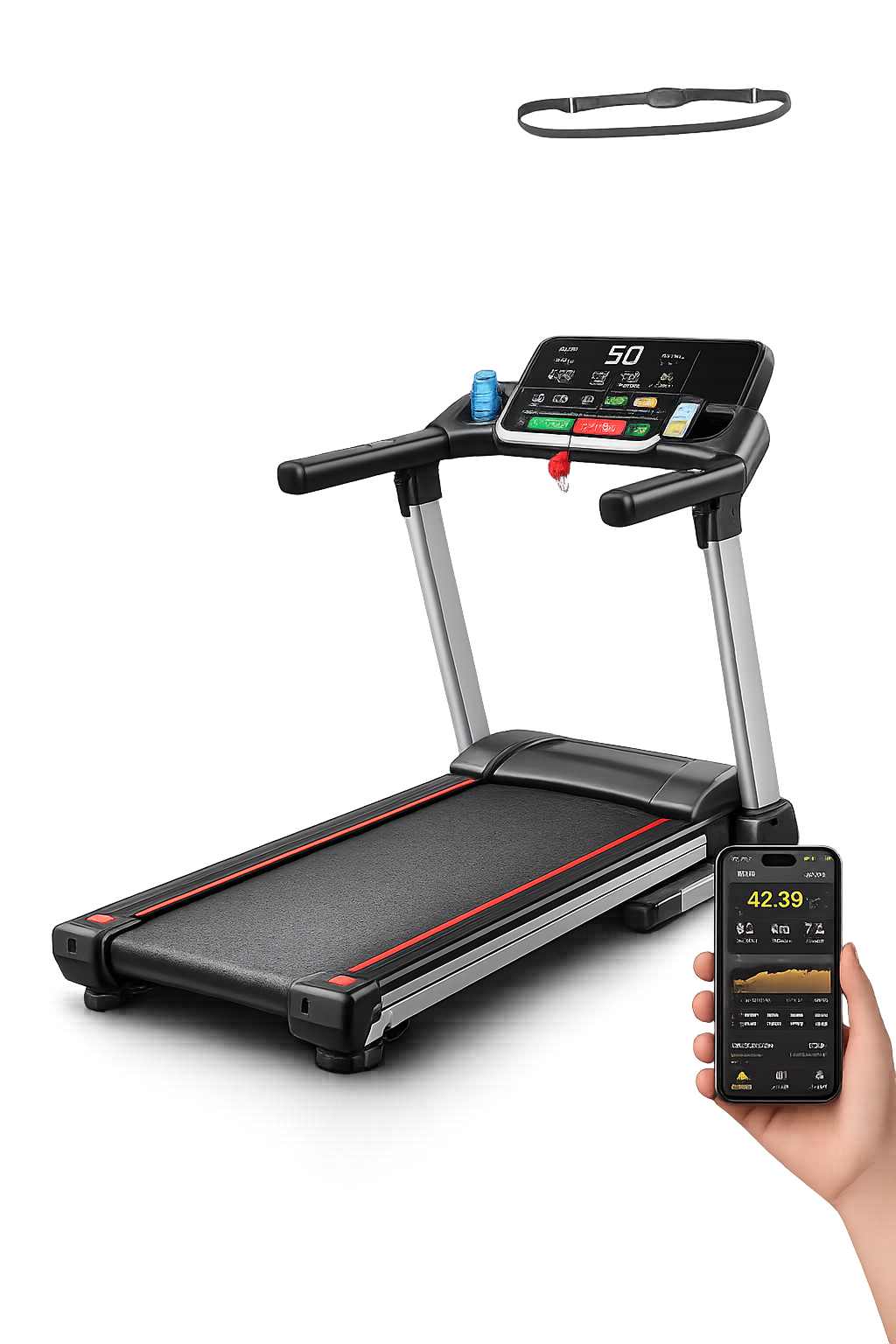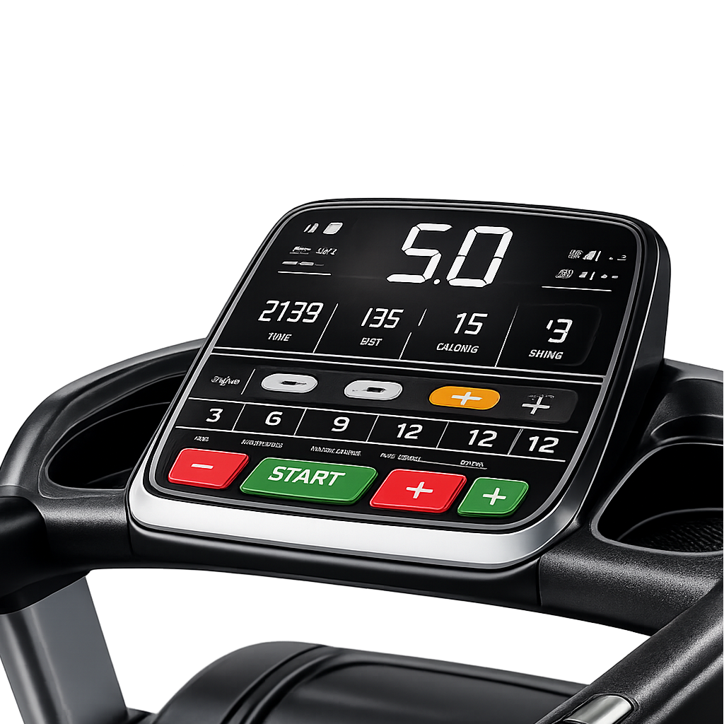 Moderní digitální displej zobrazuje klíčové tréninkové údaje, jako je rychlost, čas, vzdálenost nebo spálené kalorie. Uživatel tak může snadno sledovat svůj progres a přizpůsobovat intenzitu tréninku aktuálním cílům.